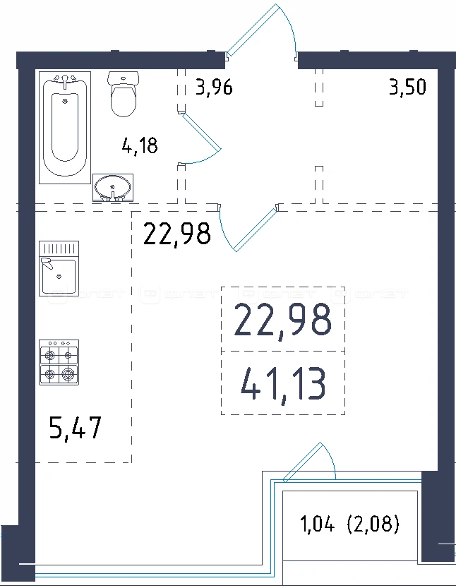 - 41.13/22.98/5.47 м²
